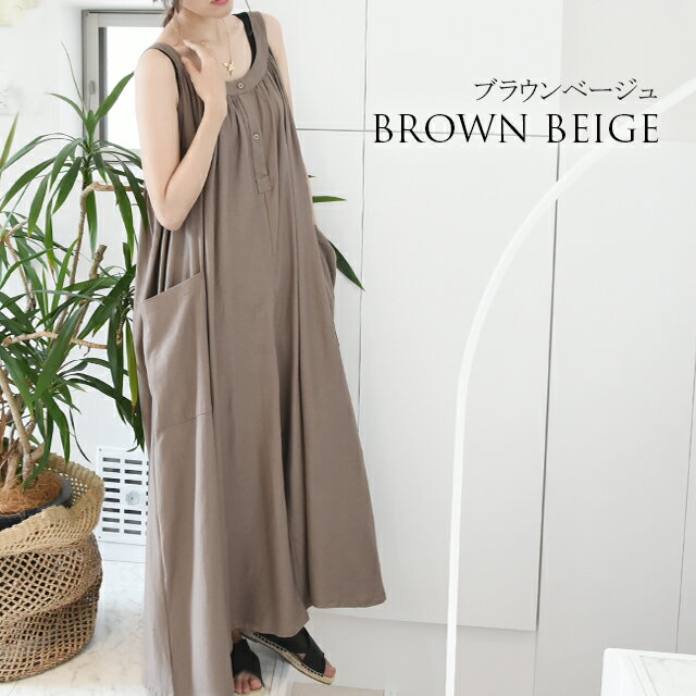 .【あす楽】 オールインワン レディース サロペット 体型カバー シンプル ナチュラルカラー 大きいサイズ フリーサイズ コンビネゾン つなぎ ワイドパンツ ワイド セレカジ パンツ ボトムス マタニティ ノースリーブ 無地 オーバーオール 夏 春 HUG.U